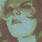 Striking sage green lipstick and eye make-up. Goes to an excessive effort to maintain her image. Expressive features -- has an ugly cry.